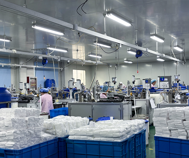DingShun memiliki ruang bersih Kelas 100.000 seluas lebih dari 4.000 meter persegi, yang merupakan kunci produksi massal produk medis kami. Bengkel kami dilengkapi dengan fasilitas produksi canggih dan jalur produksi otomatis, yang tidak hanya meningkatkan efisiensi produksi, namun juga memastikan standar tinggi dan konsistensi dalam proses produksi.